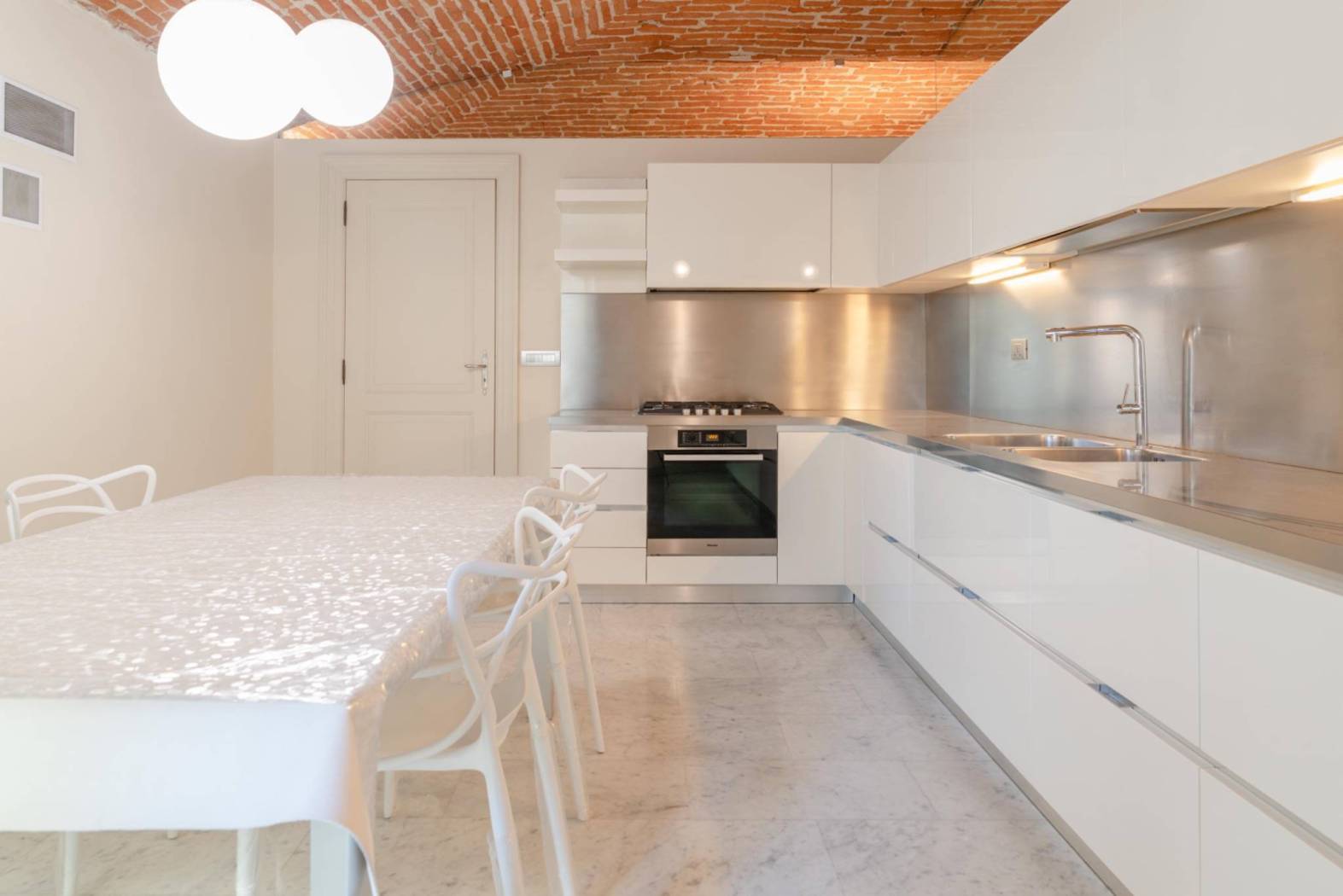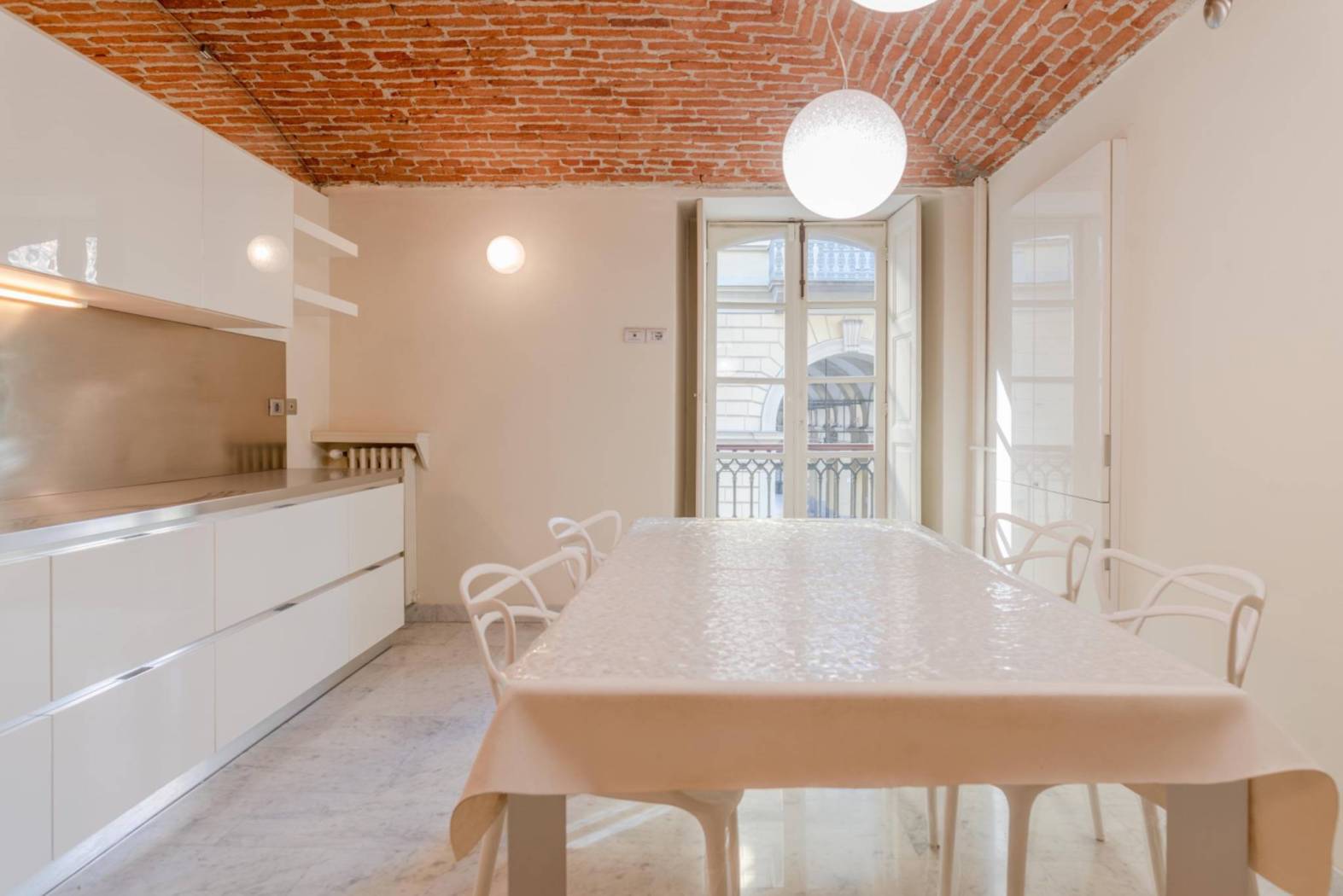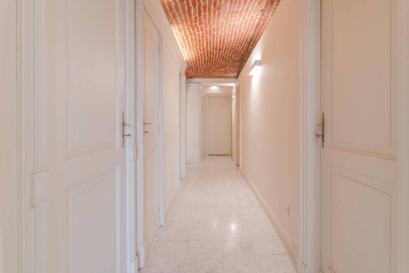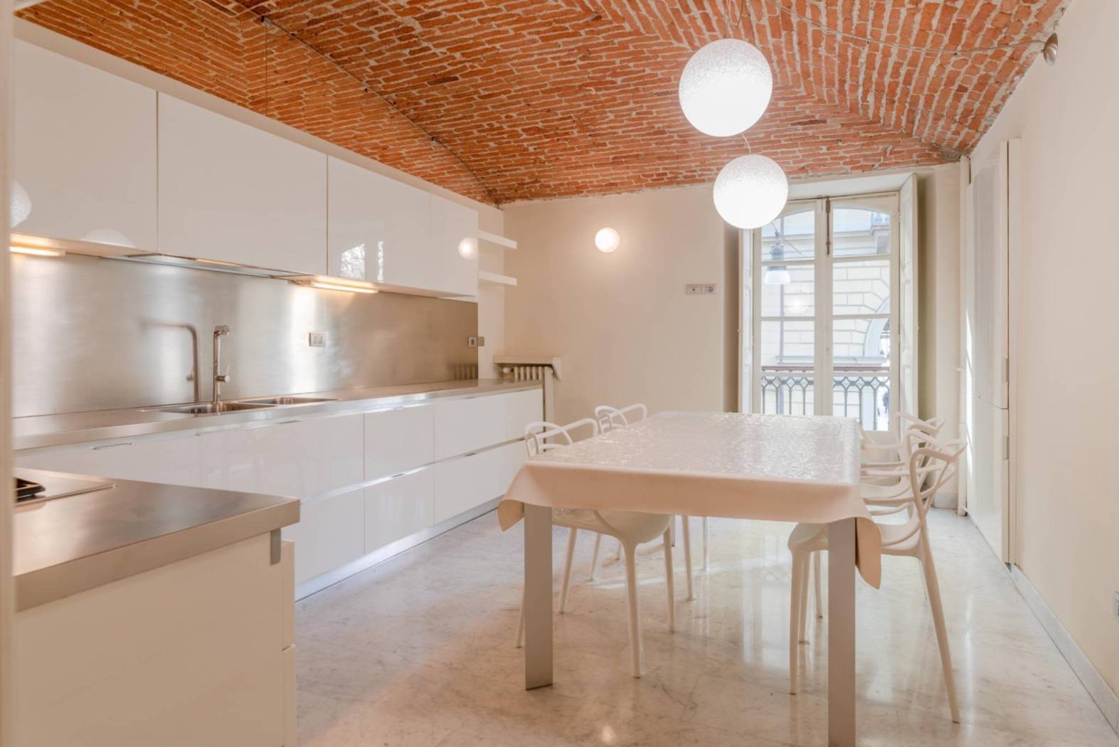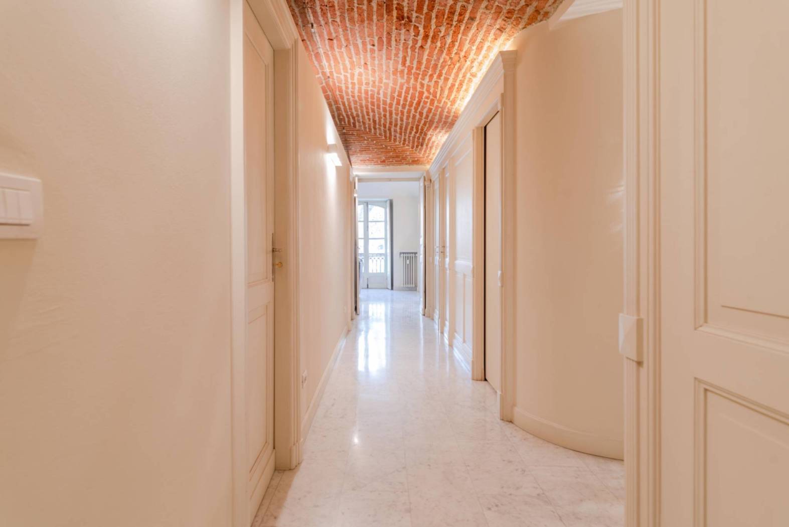In Via Saluzzo 1, Turin, within an elegant period building equipped with an elevator and full-day concierge service, we offer for rent a refined apartment located on the first floor, recently renovated and fully furnished. The property stands out for its perfect balance between traditional charm and contemporary comfort. The interiors are spacious and well laid out, enhanced by exposed brick ceilings that add character and authenticity to the living spaces. The entrance leads to a representative living room with a fully functioning fireplace, a warm and welcoming environment ideal both for everyday living and for entertaining. The kitchen is separate and habitable, fully furnished and complete with appliances. The sleeping area consists of two bedrooms and two bathrooms, finished with quality materials and designed to ensure comfort and functionality. Heating is centralized with thermostatic valves, allowing efficient and independent consumption management. A few meters from the building, a single garage of 18 sqm is available with a separate rental fee of €150 per month, a particularly valuable feature for the area. The location is convenient to all services, well connected by public transport, and set within an orderly and prestigious residential context. An ideal solution for those seeking a high-quality residence in a historic building without sacrificing modern comforts. Preferred lease agreement: 4+4. For information: GIEFFE PATRIMONI – Real Estate Advisor Turin – London – Alba – Milan – Rome – Monza (+39) 011 / 76.000.11 All information provided is indicative and does not constitute contractual elements.