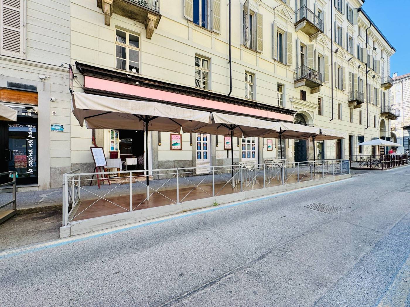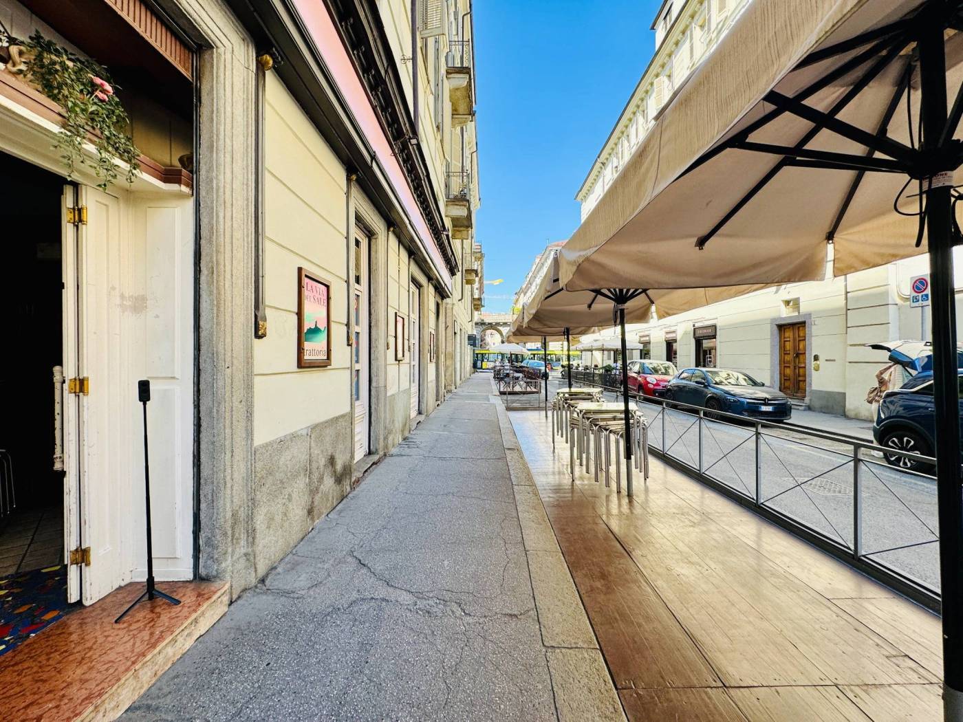 Nel cuore di Torino, in posizione di assoluto rilievo per pregio e visibilità, si trova il locale che ospita l’attività in vendita. Radicato da anni nel panorama della ristorazione torinese, il ristorante rappresenta un riferimento consolidato nel centro città, con una proposta che richiama in modo chiaro la tradizione piemontese e ligure. La collocazione, a pochi passi da via Po, assicura un passaggio pedonale costante e un’eccellente esposizione, valorizzata dalle quattro vetrine su via San Francesco da Paola. Il locale si sviluppa su una superficie di circa 170 mq e presenta oggi un ampio ingresso, una zona accoglienza con bancone e cassa, due grandi sale di somministrazione e la cucina. Al piano interrato completa la proprietà una cantina pertinenziale. La conformazione degli spazi consente di accogliere fino a 70 coperti interni, oltre a ulteriori 20 posti nell’ampio dehors su strada. Gli ambienti conservano un carattere autentico e riconoscibile, esaltato dalle volte a crociera in mattoni a vista, che restituiscono tutto il fascino storico del contesto condominiale in cui l’attività è inserita. La cessione comprende la licenza di somministrazione tipologia 4, gli arredi, le attrezzature e il contratto di locazione in essere. Canone mensile pari a euro 3.500, comprensivo di spese e posto auto all’interno del condominio. Per informazioni: GIEFFE PATRIMONI Real Estate Advisor, Torino – Londra – Alba – Milano – Roma – Monza. (+39) 011 / 76.000. 11 Tutti i dati sopra riportati non costituiscono elementi né presupposti contrattuali.