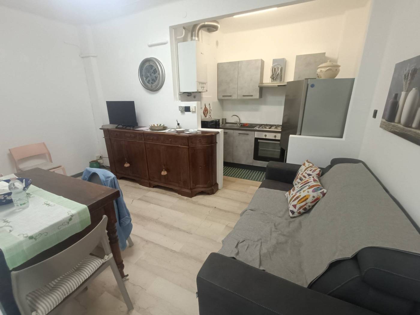 A pochi metri dal mare e dal cuore di Arma di Taggia. In posizione centrale e a pochi passi dal rinomato Viale delle Palme, appartamento ammobiliato, luminoso e pronto da abitare, situato al quarto piano dell’elegante “Palazzo Europa”, servito da ascensore. Ristrutturato parzialmente nel 2024: infissi, tapparelle e porte interne, completo di arredi nuovi moderni e funzionali, pavimentazione in travertino degli anni ’60, ben mantenuto, con venature naturali e finitura lucida che valorizzano gli ambienti donando un tocco di raffinatezza, subito abitabile, ideale come investimento ad uso turistico, casa vacanze o residenza stabile. L’appartamento, con unica esposizione a est e affaccio interno su tranquillo cortile condominiale (accesso pedonale da Via Stazione), si compone di: Ingresso di taglio rettangolare che disimpegna la zona giorno con la zona notte, soggiorno con parete cucina a vista e balcone attrezzato ad uso lavanderia, camera matrimoniale climatizzata, bagno finestrato ristrutturato nel 2010. La posizione garantisce ottima luminosità per tutta la mattinata, mentre il contesto riservato assicura tranquillità e comfort. Il condominio offre: ampio parco comune sottostante con area giochi per bambini, spazi pedonali curati. Nelle immediate vicinanze parcheggi gratuiti (ex posteggio buca delle palme H.H. Beckman e/o Via Stazione/Via S. Caboto) supermercato Carrefour, negozi, ristoranti, farmacia Stazione ferroviaria a soli 1,5 km. Un’opportunità perfetta per chi cerca una casa al mare comoda, centrale, già ammobiliata e pronta da vivere! Appartamento provvisto di impianto elettrico e termico a norma certificato. Categoria A/2 – Rendita catastale : Euro 309,97 Per informazioni: GIEFFE PATRIMONI Real Estate Advisor, Torino – Londra – Alba – Milano – Roma – Monza. (+39) 011 / 76.000.11 Tutti i dati sopra riportati non costituiscono elementi nè presupposti contrattuali.